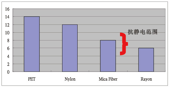 冰涼纖維與其他紗種比較,云母紗優(yōu)異的抗靜電效果使其與PET或者NYLON產生區(qū)別。